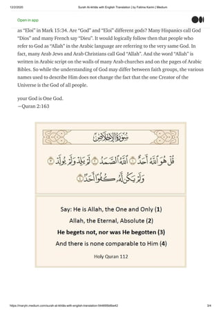 Surah Al Ikhlas With English Translation By Fatima Karim